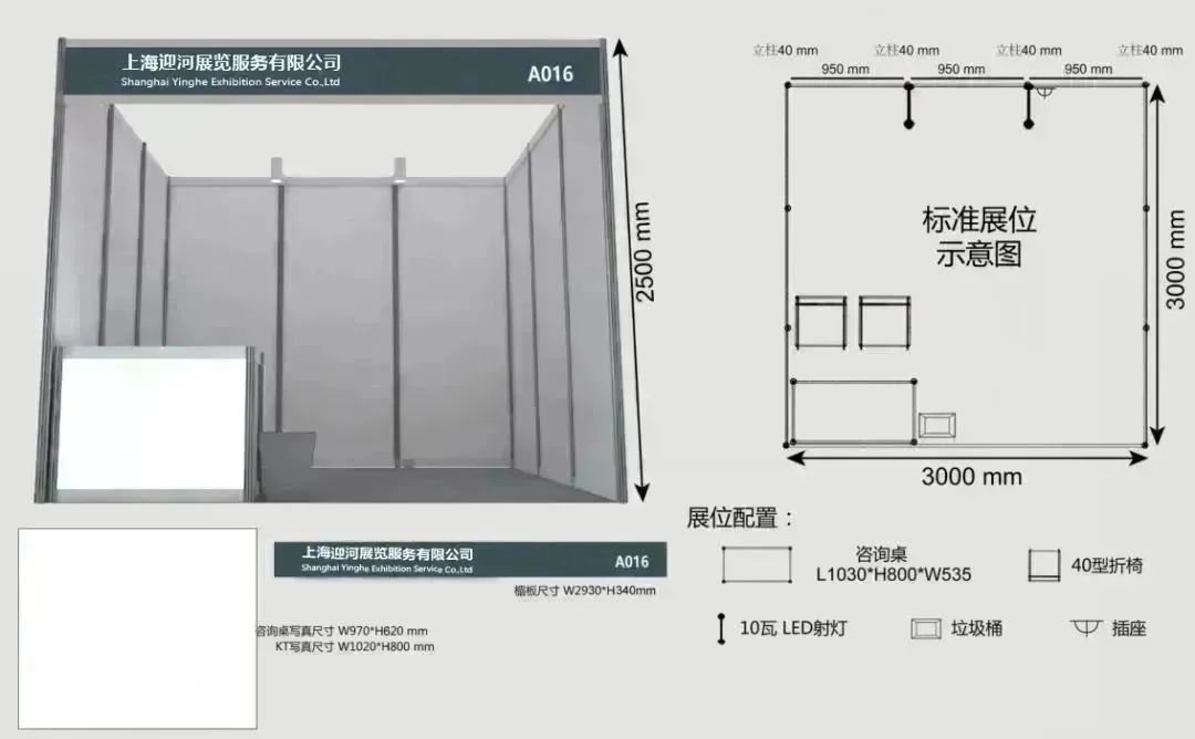 注:標(biāo)準(zhǔn)展位(包括:三面圍板、地毯、一桌二椅、二只射燈、220V/500W電源插座一個。)雙面開口標(biāo)準(zhǔn)展位加收RMB2000元。