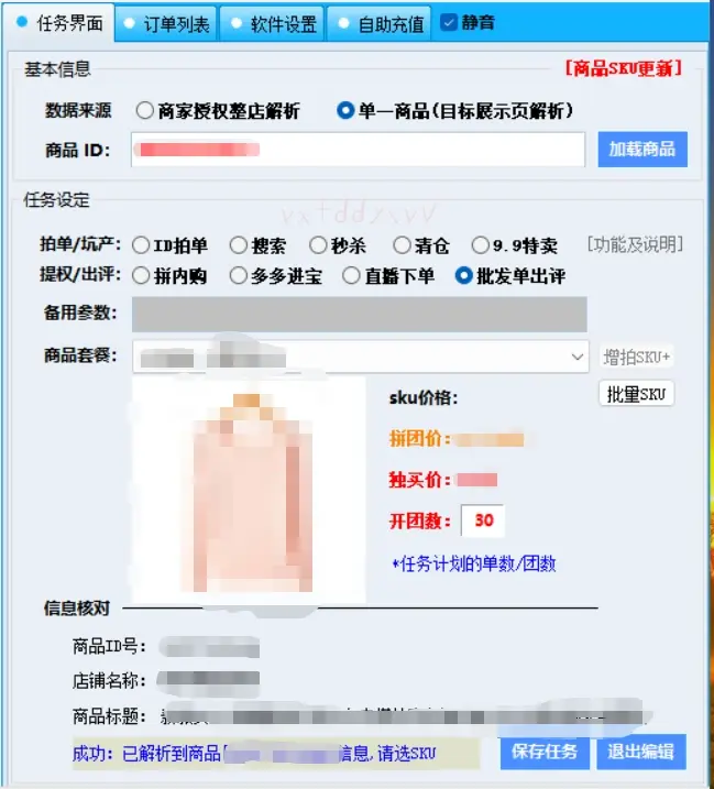 1,多多開團助手是一款集補開團、拼團、單買、免拼,于一體的輔助開團軟件,可以從ID、搜索關鍵詞、多多進寶、多多批發(出評)、直播下單等多方式拍單模式,能加收藏,加關注,領取優惠券下單,自定義添加咨詢語,恢復3分鐘回復率,一單一號一ip,小號不重復使用,軟件功能齊全,安全性強,是目前市場上最穩定性強的一款,能加權重,排名,坑產,批發百分百出評,界面簡單,操作簡單方便快捷,全自動化生成訂單,授權成功一對一負責售后服務等服務,助手可試,功能最多的,拼多多虛擬開團。